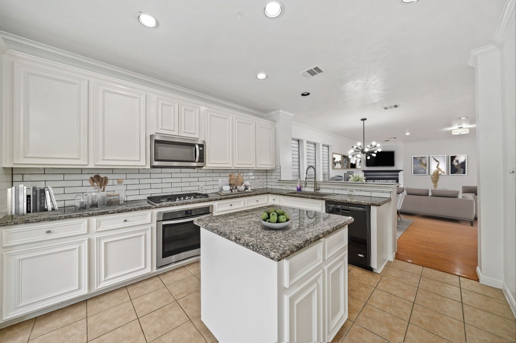 This rare find features 3 bedrooms and 3.5 baths, providing ample space and privacy for you and your loved ones. With a 2-car garage and additional storage, you’ll have plenty of room for all your belongings. Step outside to a cute patio area, ideal for enjoying your morning coffee or relaxing in the fresh air. Inside, the spacious 2nd-floor living area welcomes you with an open floor plan, hardwood floors, crown molding, and recessed lighting, creating an inviting and stylish atmosphere. The kitchen boasts beautiful granite counters and stainless steel appliances, making meal preparation a breeze. Plus, the convenience continues with the inclusion of a refrigerator, washer, and dryer. All bathrooms have been recently updated, ensuring a modern and fresh feel throughout the home.