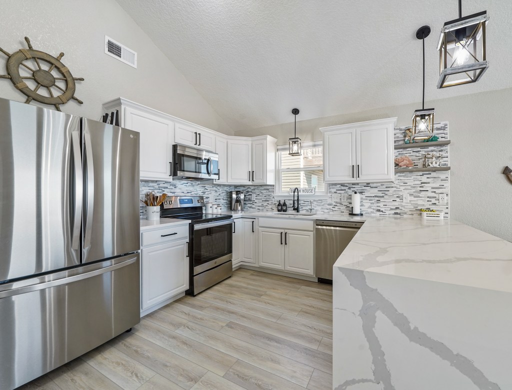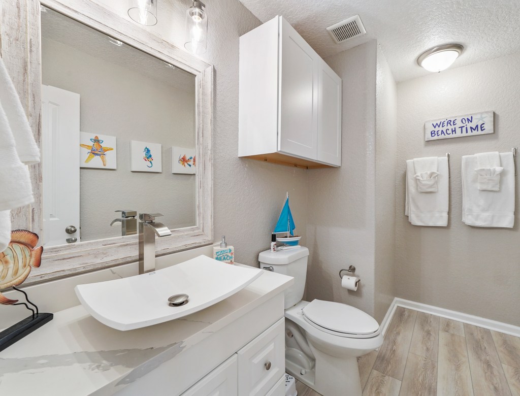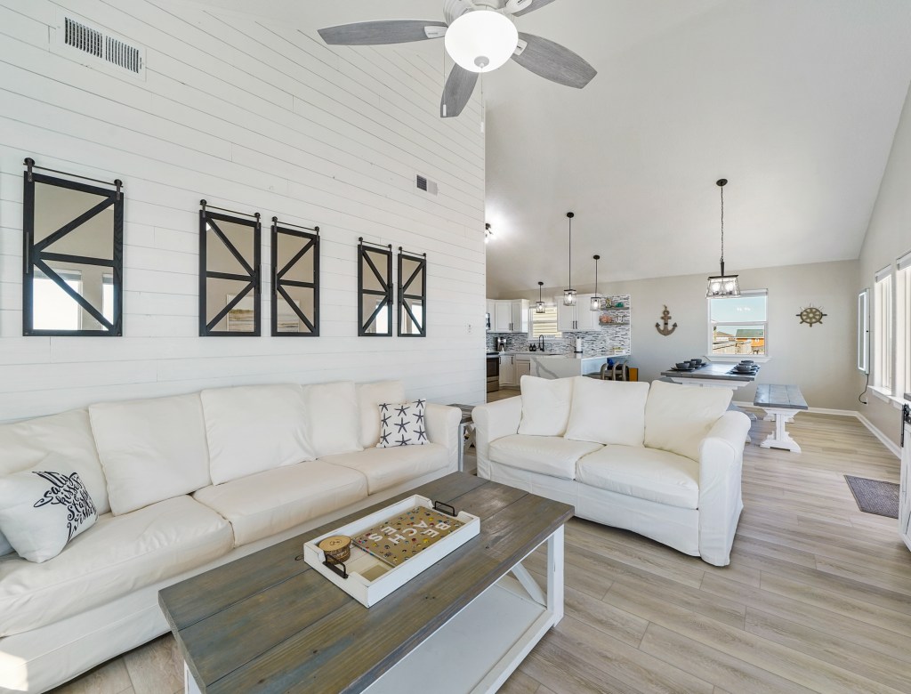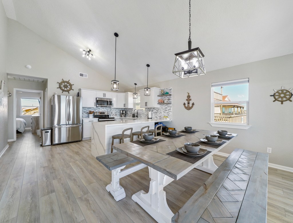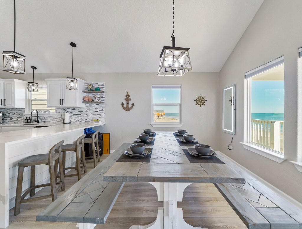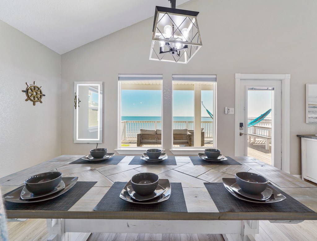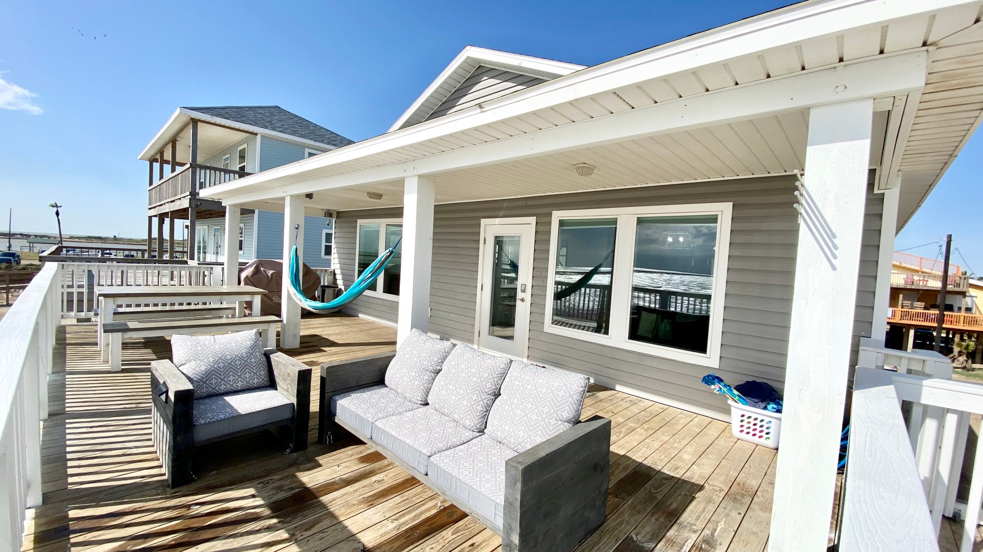 Welcome! SUNRISE and SHINE Beach House was newly renovated in November 2020 and offers a little something for everyone. The house boasts an expansive 16 ft. deck that gives you 180-degree ocean views as you kick back and relax from sunrise to sunset. You’ll also have the best spot to watch surfers, birds, dolphins, and boats coming in and out of the harbor channel. But don’t just observe, immerse yourself in the beach below for surfing, swimming, sand castles, and sun-bathing. Also, right next door is a state park with a children’s playground and splash park, a mile-long jetty for fishing, and even a pier where you can go crabbing!