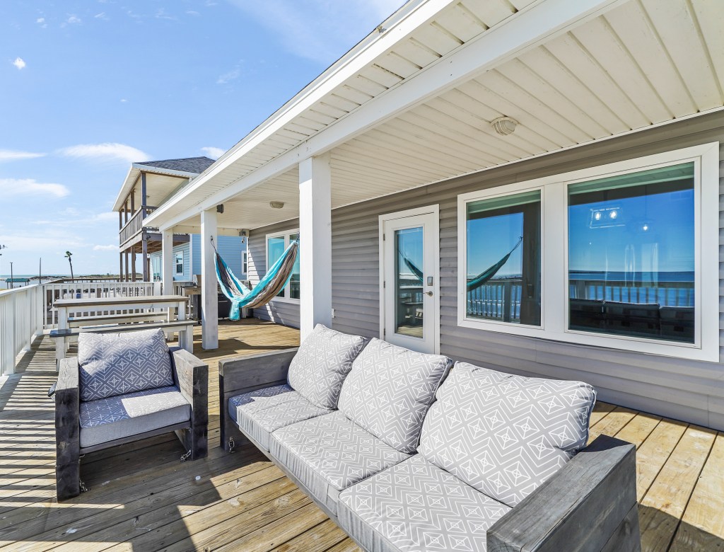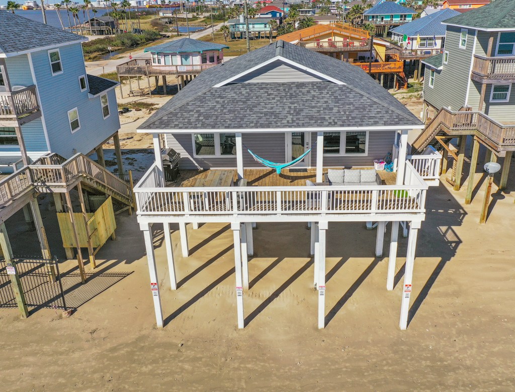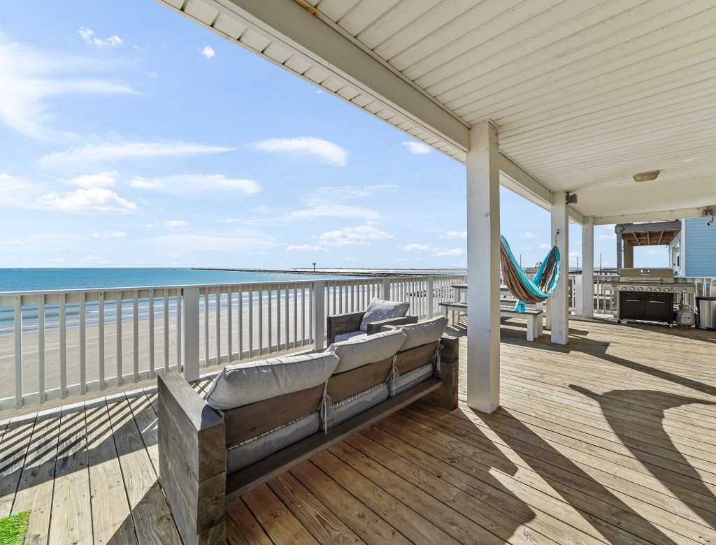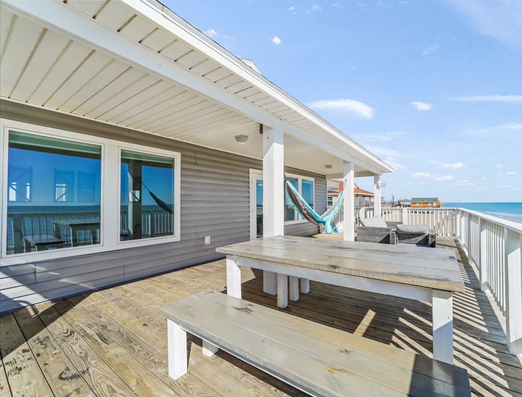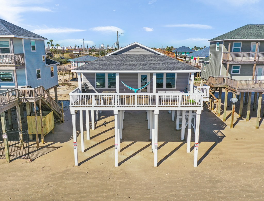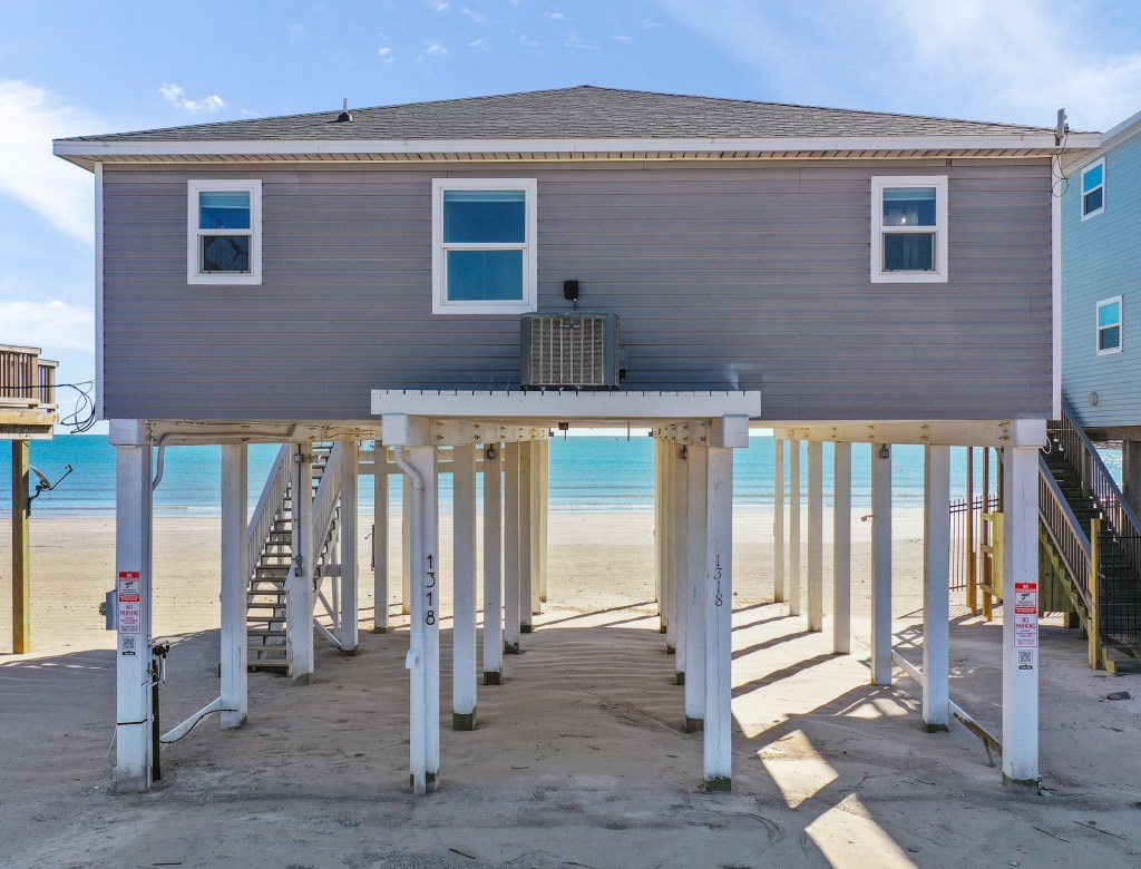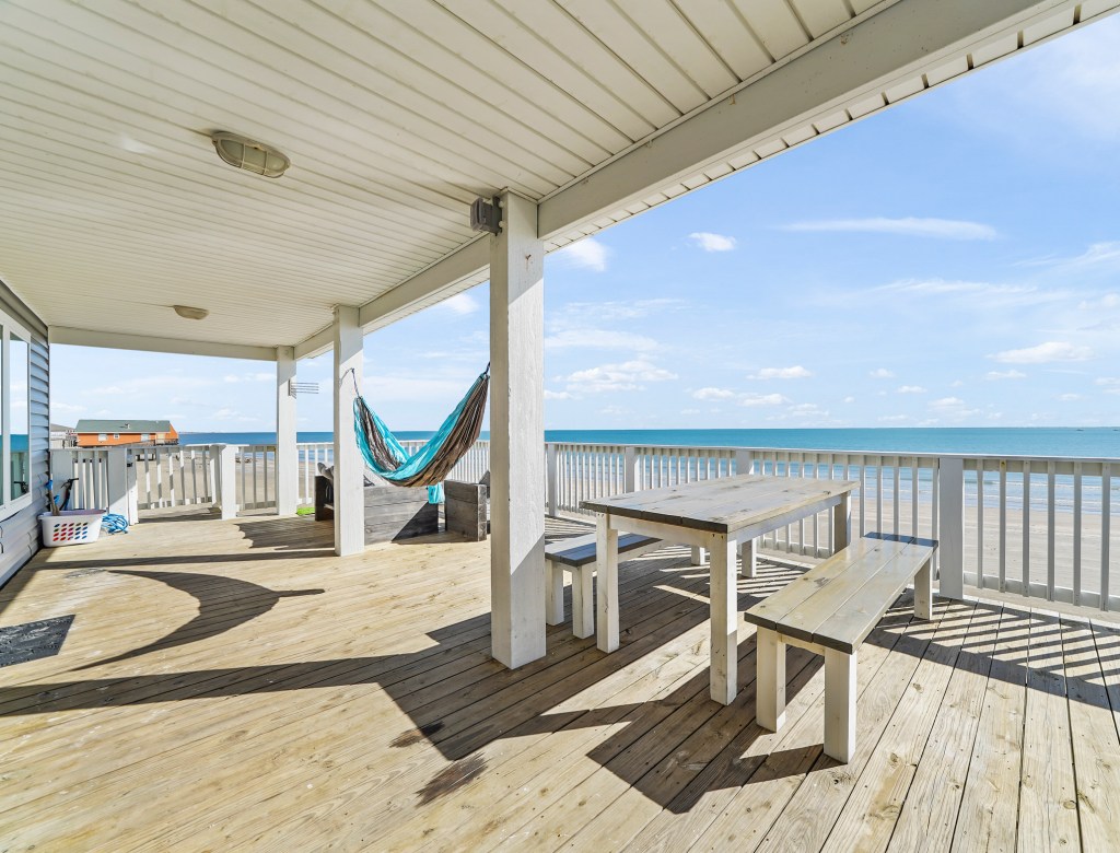 This is one of the unique homes on Surfside Beach with direct beach access, so you don’t have to worry about carrying belongings long distances over bridges and dunes! You literally just walk downstairs to the beach! It comes equipped with an outdoor hot and cold shower as well as ample area underneath the home perfect for entertaining or escaping the sun. A BBQ grill, outdoor dining table, hammock, and patio furniture on the deck are ready and available for outdoor entertaining, too.