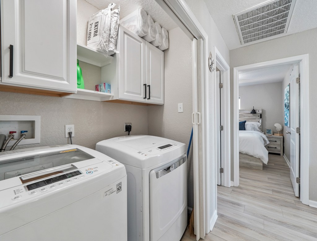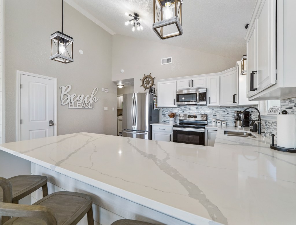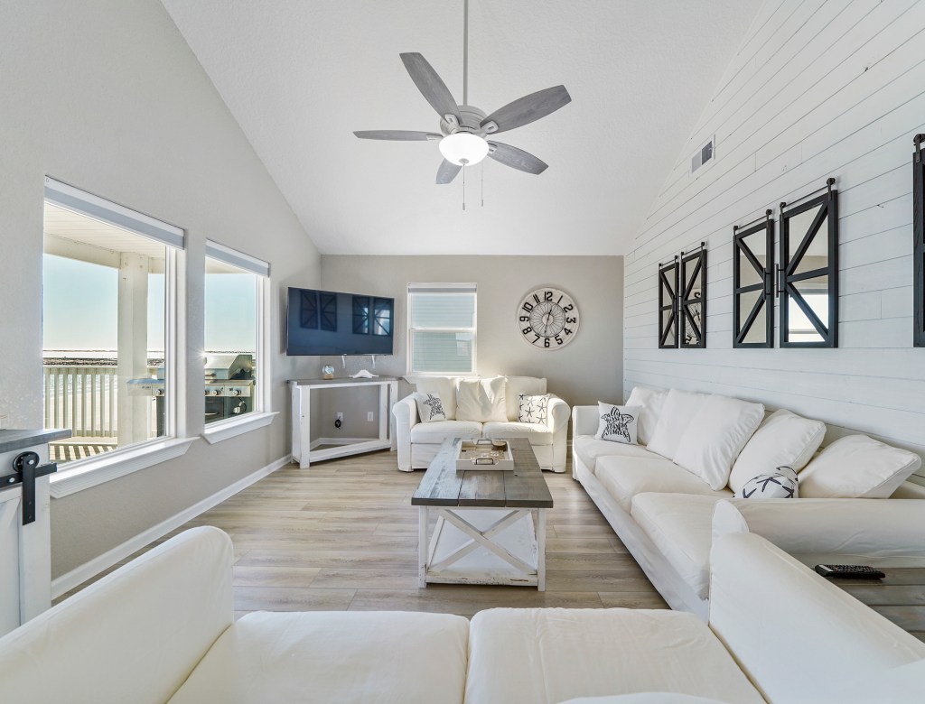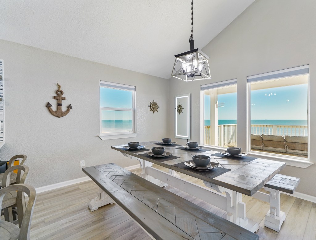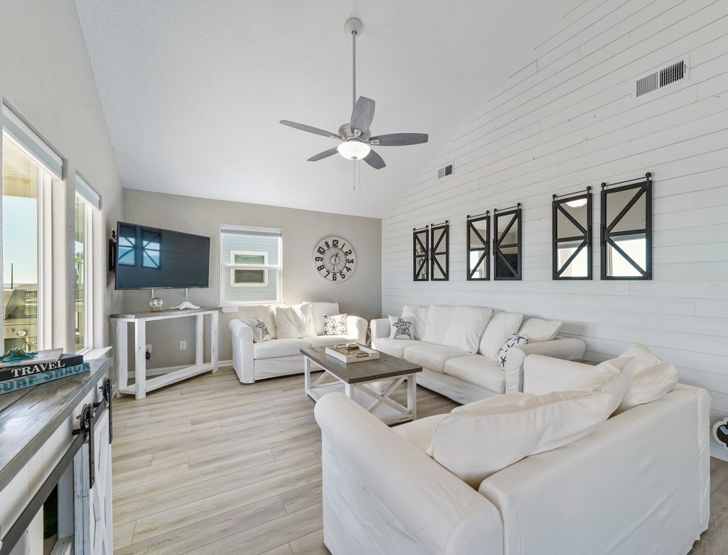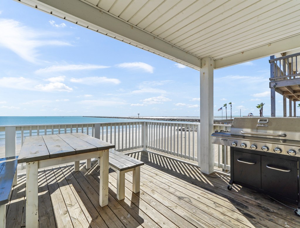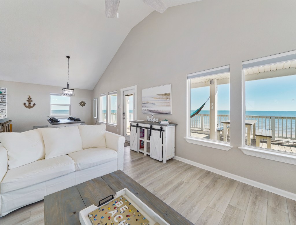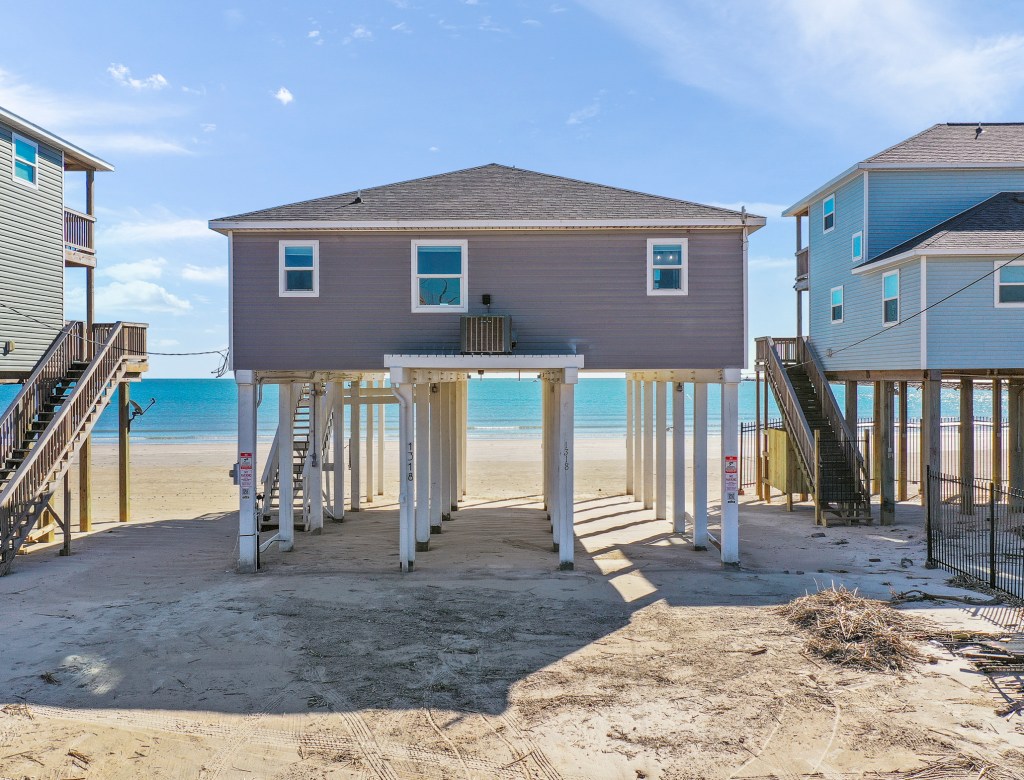 This is one of the unique homes on Surfside Beach with direct beach access, so you don’t have to worry about carrying belongings long distances over bridges and dunes! You literally just walk downstairs to the beach! It comes equipped with an outdoor hot and cold shower as well as ample area underneath the home perfect for entertaining or escaping the sun. A BBQ grill, outdoor dining table, hammock, and patio furniture on the deck are ready and available for outdoor entertaining, too.