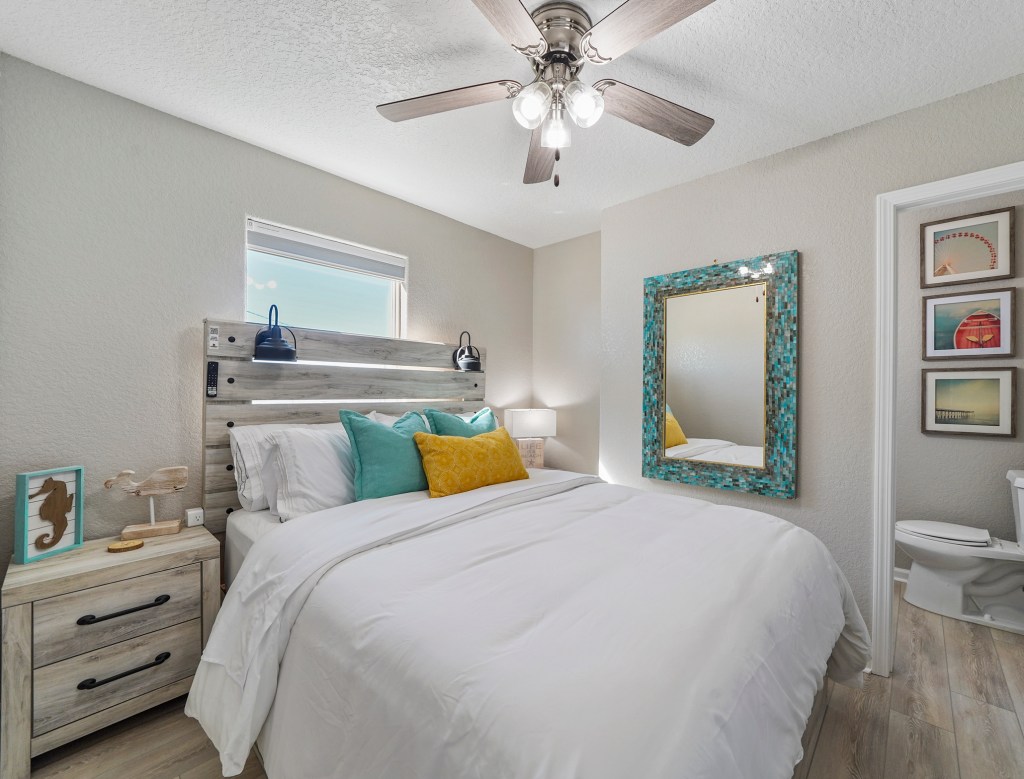 Master bedroom with King size Sealy Surrey Lane plush pillowtop mattress